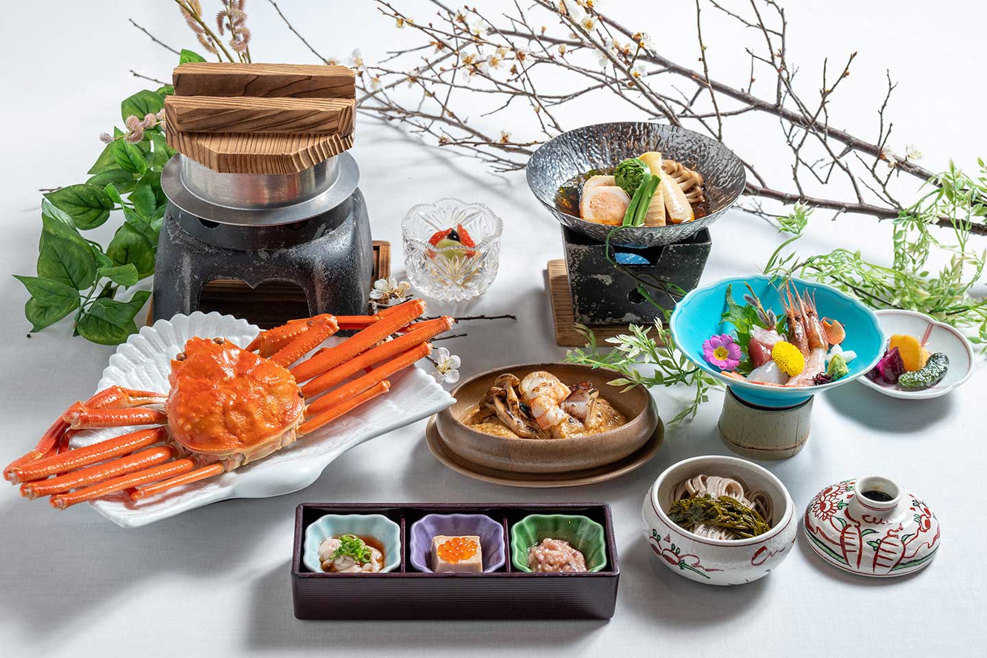 佐渡産を中心に、厳選した旬の食材を会席料理にておもてなしいたします。また旬の魚介をお客様の目の前で調理する「しんちゃんの浜焼き」も人気です。佐渡の地酒とともに、佐渡の味覚を心ゆくまでお召し上がりください。朝食はバイキング形式または和定食です。