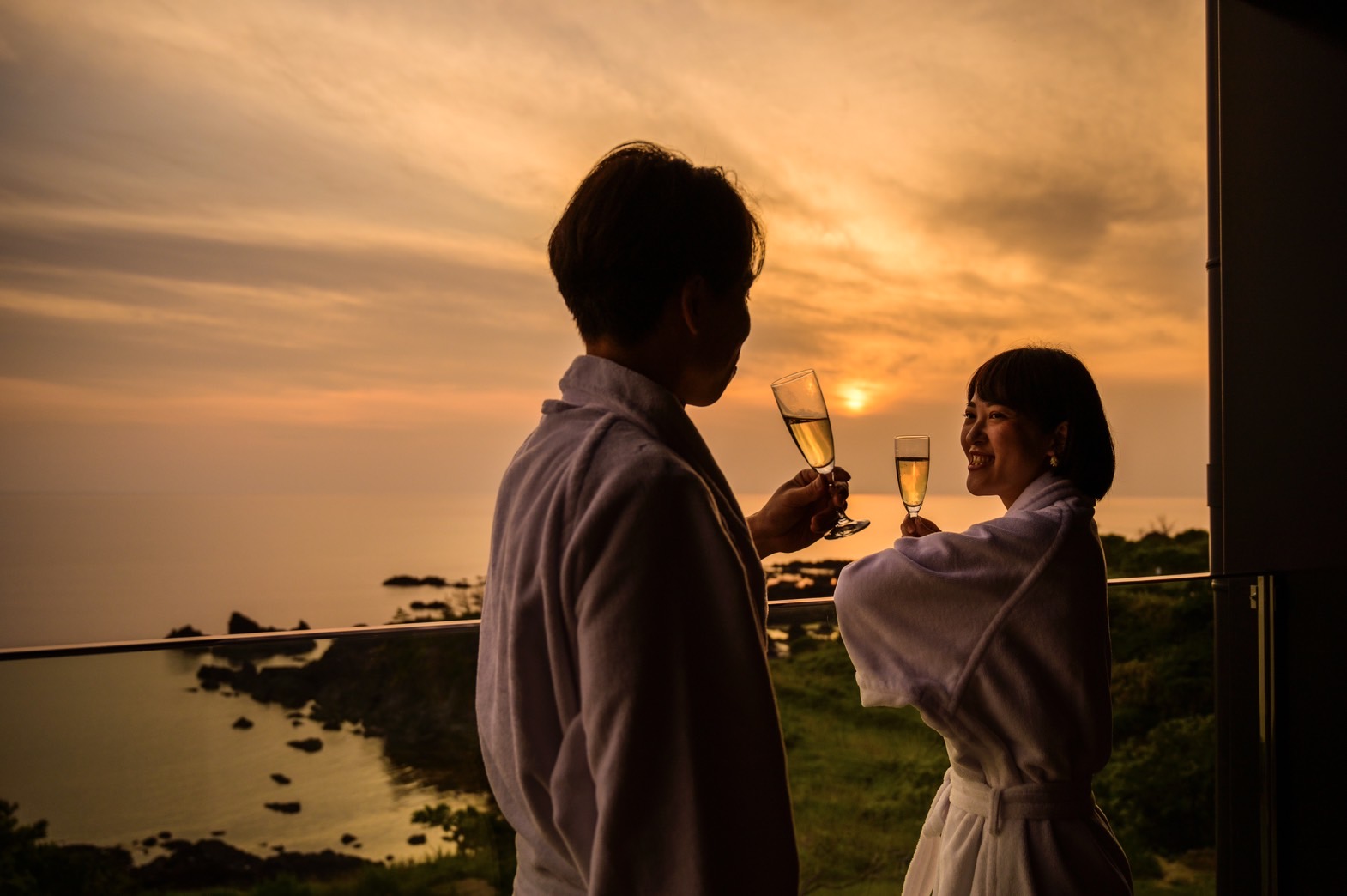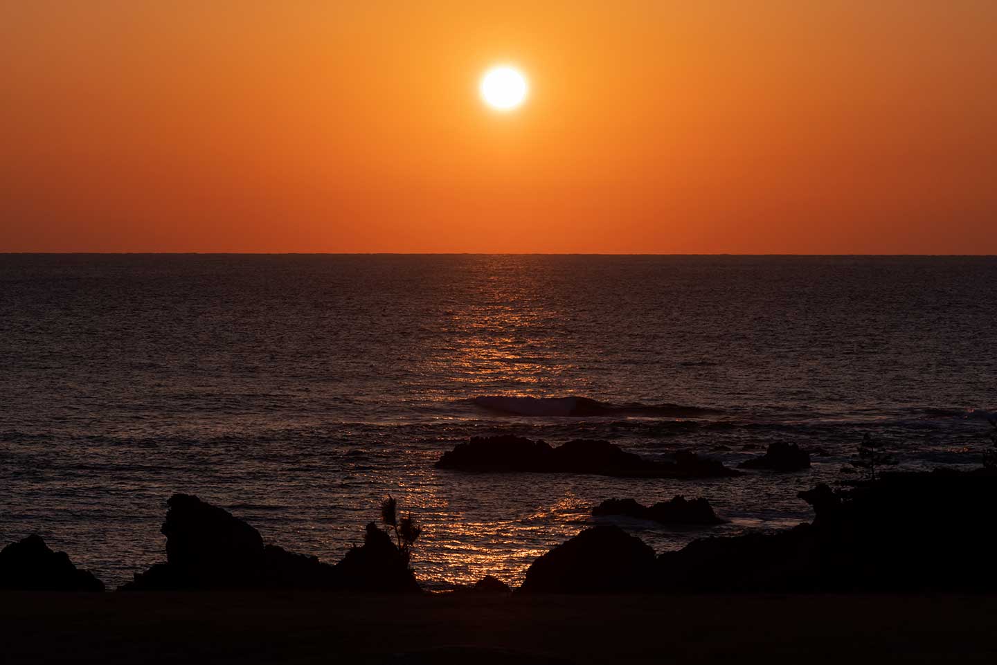 ホテルの建つ七浦海岸は「日本の夕陽100選」にも選ばれている佐渡有数の景勝地です。「佐渡ブルー」の空と海が陽射しできらめき、夕暮れの訪れとともに朱色に染まっていく、まさに絵画のような美しい光景をぜひ体感してください。