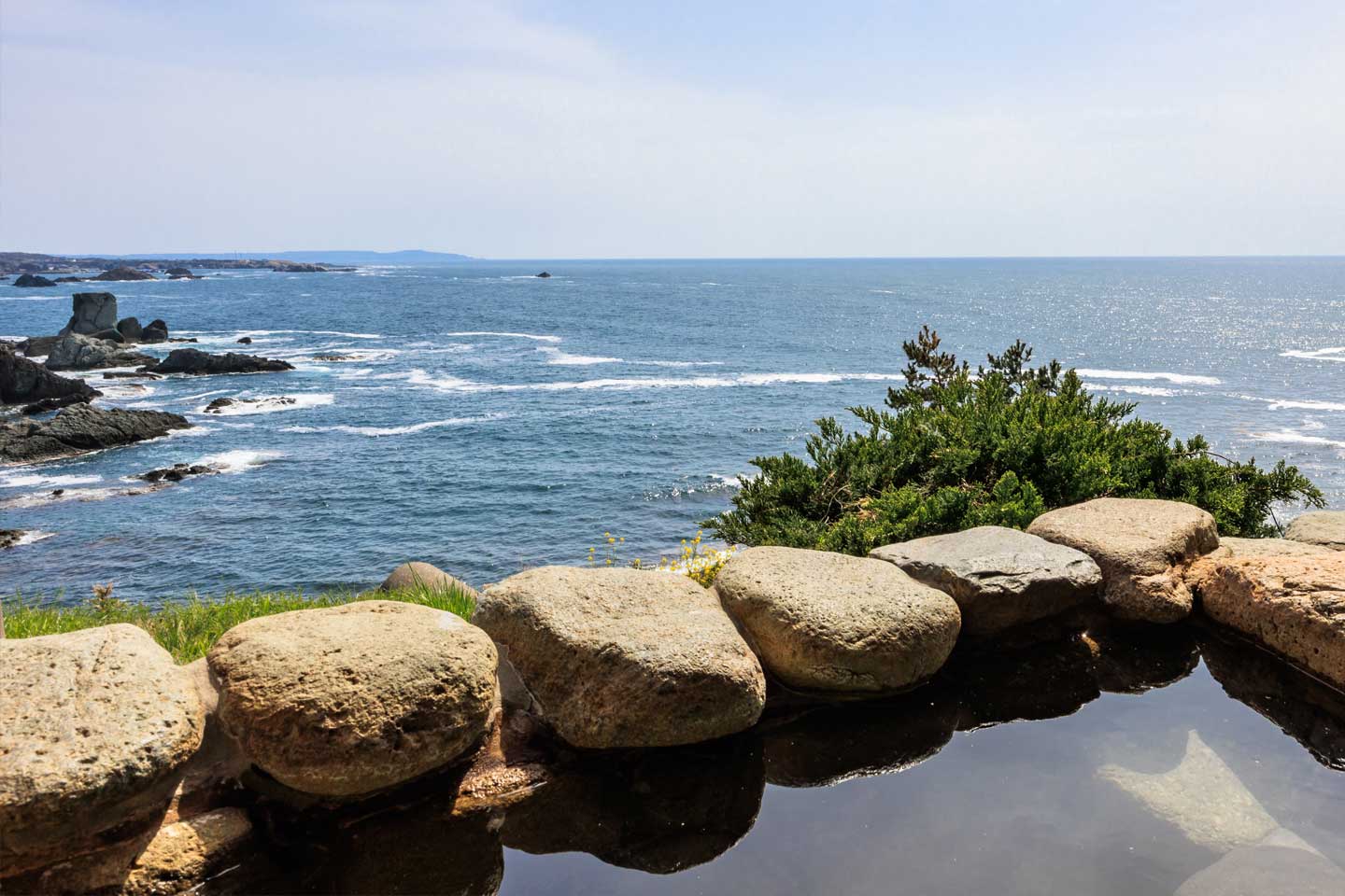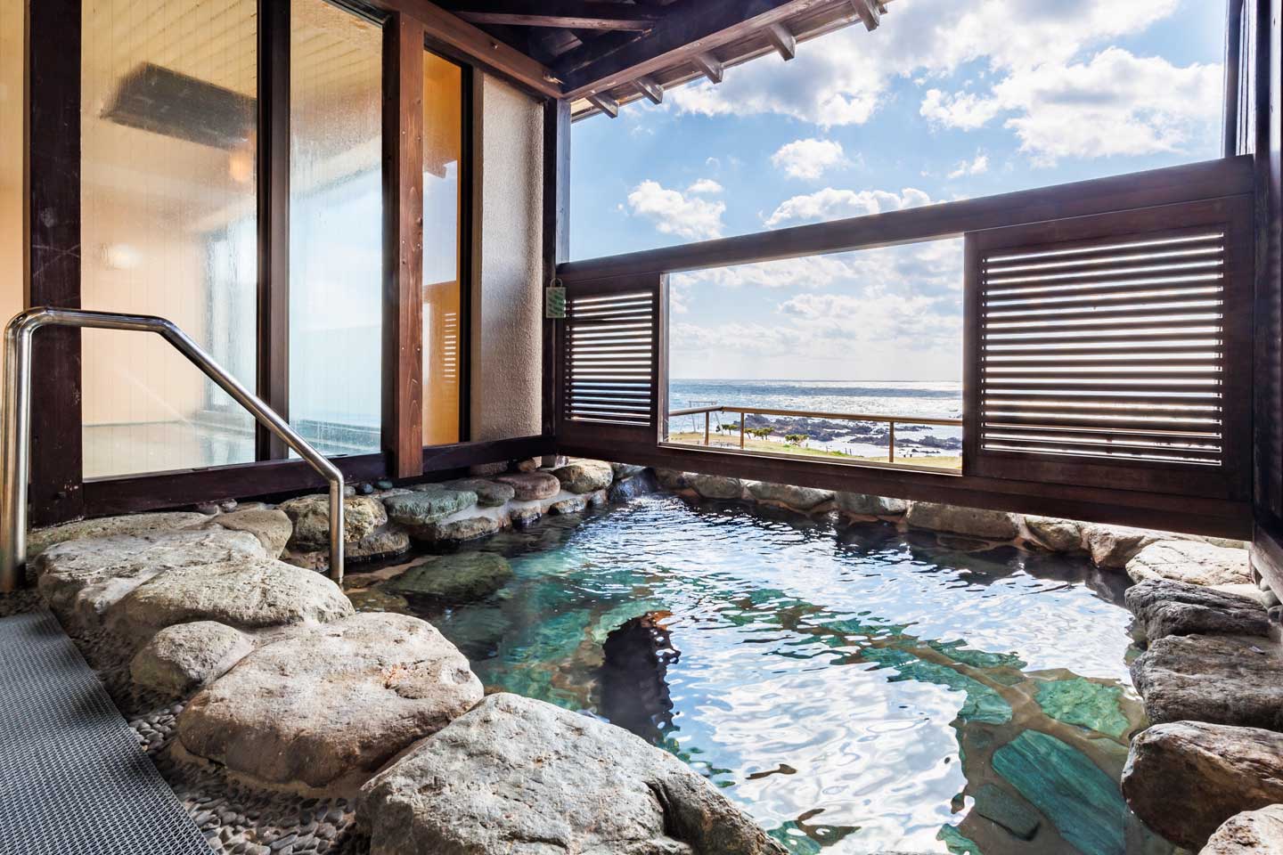 どのお風呂も日本海に面しています。大浴場の露天風呂は「相川温泉」、貸切露天風呂は「海洋深層水風呂」です。館内の各種施設もお気軽にご利用ください。