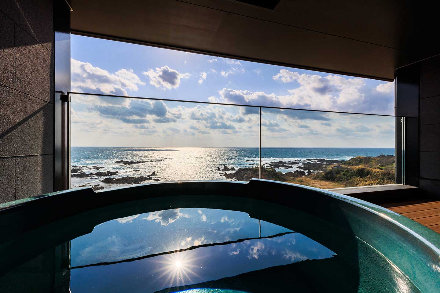 さらに、海を眺める露天風呂付の「露天風呂付プレミアコーナースイート」「露天風呂付プレミアスイート」「露天風呂付オーシャンテラススイート」など異なる趣向でバリエーション豊かに、どのお部屋からも最高の眺望を楽しみながらお過ごしいただけます。