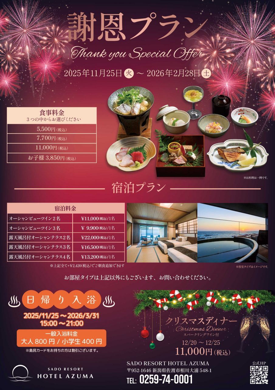 ◆ 期間限定・特別宿泊プラン(11月25日〜2026年2月28日)